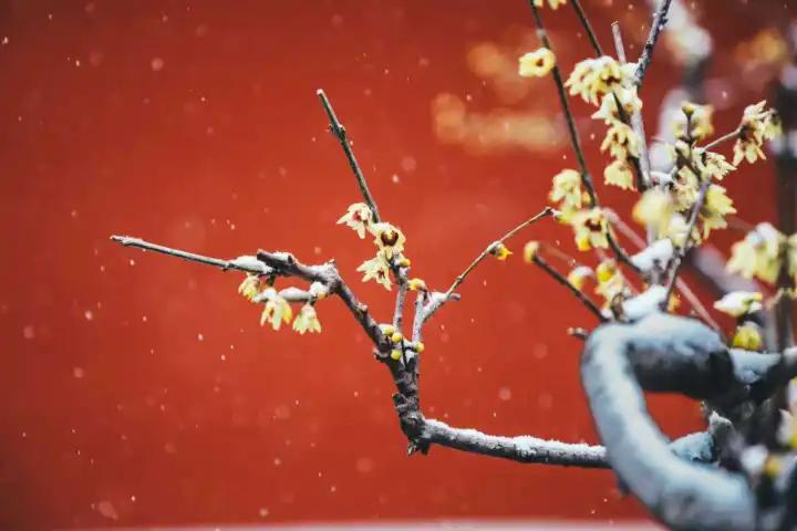 国家植物园北园蜡梅傲雪。国家植物园